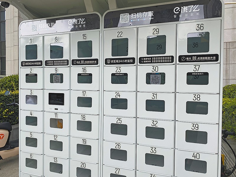 8月19日中午,《中国消费者报》记者在成都环球中心一个出口外看到,该处的取餐柜7行6列,共有42个柜子。下面几行的柜子大约有一个成年人手掌高,上面几行的柜子空间更大,大约有成年人小臂高。中午12点前后半个小时内,前来取餐柜送餐的外卖小哥几乎没有断过。只见外卖小哥用手机扫码,柜门自动弹开,到放进外卖离开,整个过程大约一两分钟。“对我们来说肯定是太方便了。”一位外卖小哥表示,以环球中心为例,送餐高峰期,光是等电梯、坐电梯上下楼,至少都要十分钟,现在用取餐柜,一分钟就好了。