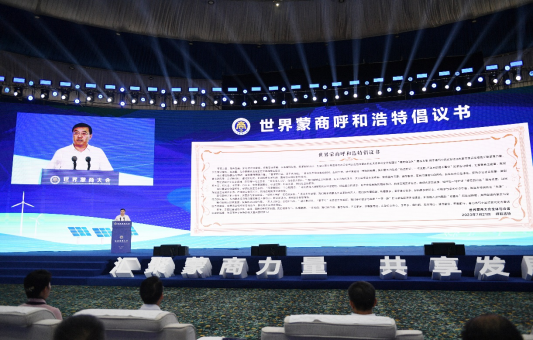 开幕式上,伊利集团董事长、总裁 潘刚宣读《世界蒙商呼和浩特倡议书》
