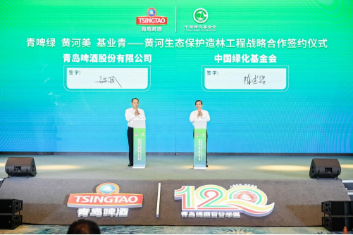7月22日,青岛啤酒举行成立120周年暨加力提速高质量发展大会。大会上,青岛啤酒与中国绿化基金会签署黄河生态保护造林工程战略合作协议,启动“青啤绿 黄河美 基业青 黄河生态保护造林工程”,项目首期将在黄河重点流域植树120万棵。
