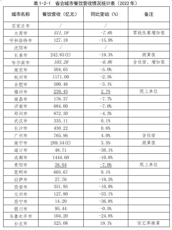盘点各省会城市、直辖市餐饮业营收状况