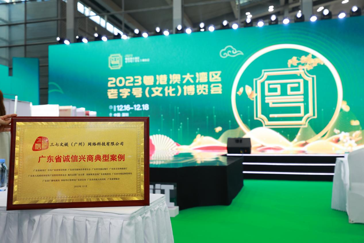 近日,“2023粤港澳大湾区老字号(文化)博览会”在深圳举行。开幕式上,广东省商务厅代表省各主办单位发布2023年广东省诚信兴商典型案例名单,并为荣获典型案例的26个案例主体颁发牌匾。其中,三七互娱凭借全面的诚信文化建设成功入选,成为广东省文娱企业唯一入选案例。