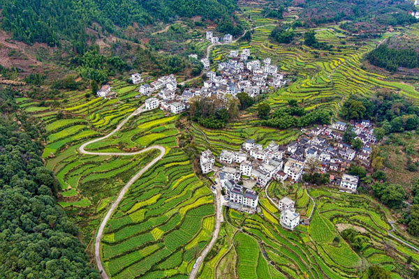 正值春暖花开,在江西婺源县的乡村田野,金灿灿的油菜花梯田层层叠叠、错落有致、美不胜收。近年来,婺源县各级党组织鼓励当地农民多种油菜,既增加农民收入,又带动乡村旅游的发展,乡村旅游日渐成为该县实现乡村振兴的重要路径。图为婺源县溪头乡江岭梯田油菜花海。 组织人事报 王国红 摄