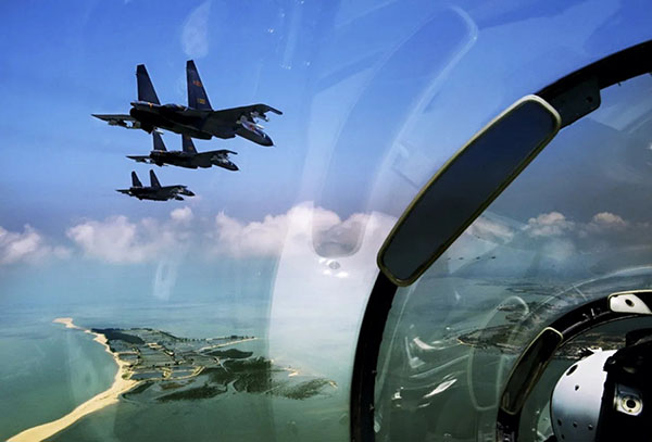 南海战巡 。2009年6月25日,中国南海空域,空军航空兵某师正在进行海上战巡。沈玲 摄