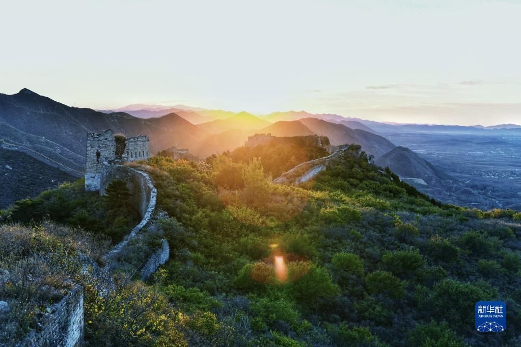 深秋时节,位于河北省迁安市的巍峨长城与连绵山岭交相映衬,风光壮美。新华社记者 金皓原 摄