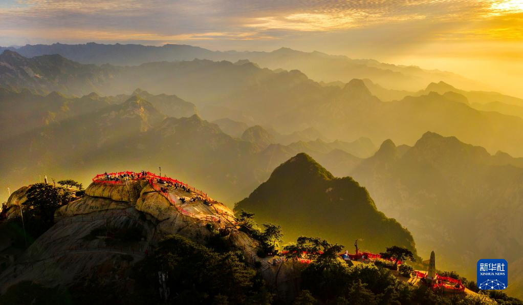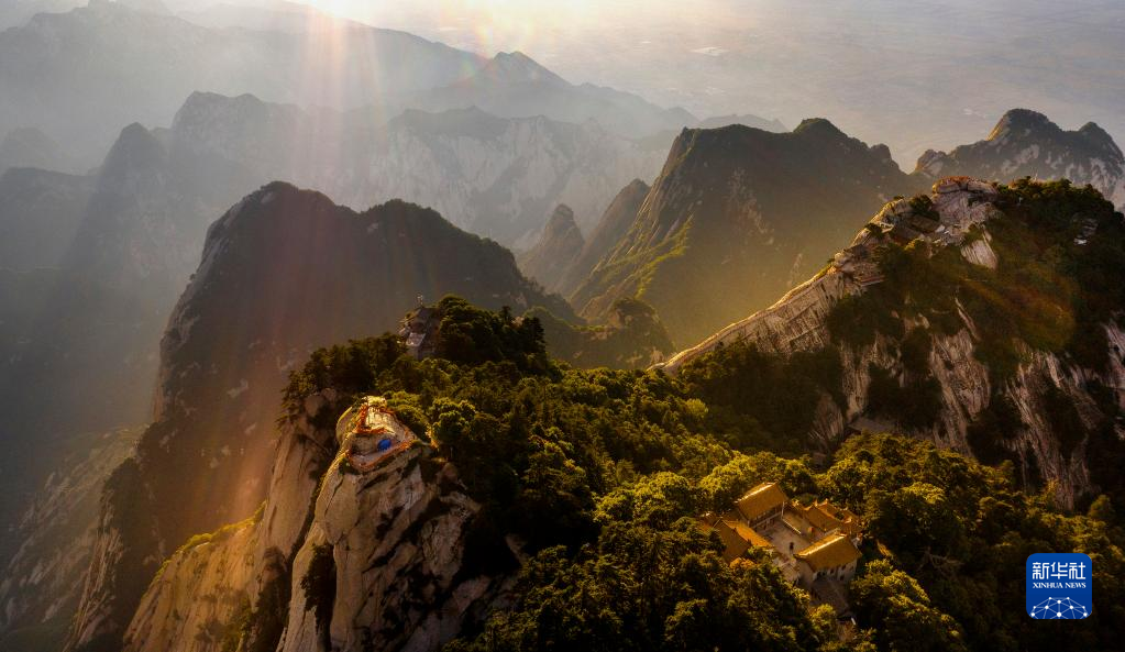 雨后初霁,位于陕西省华阴市的西岳华山在晚霞映照下,风光壮美。新华社记者 陶明 摄