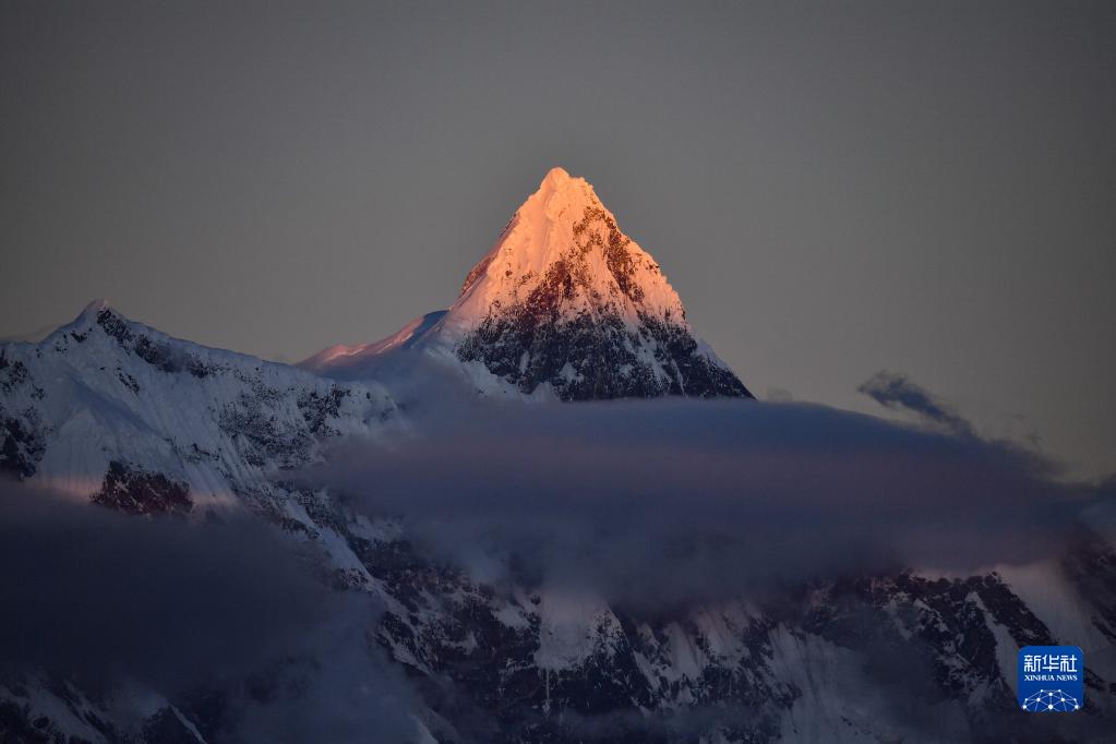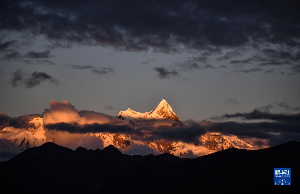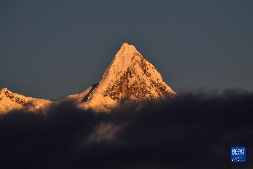 南迦巴瓦峰是西藏林芝市最高峰,位于喜马拉雅山脉东端,巨大的三角形峰体终年积雪。新华社记者 晋美多吉 摄