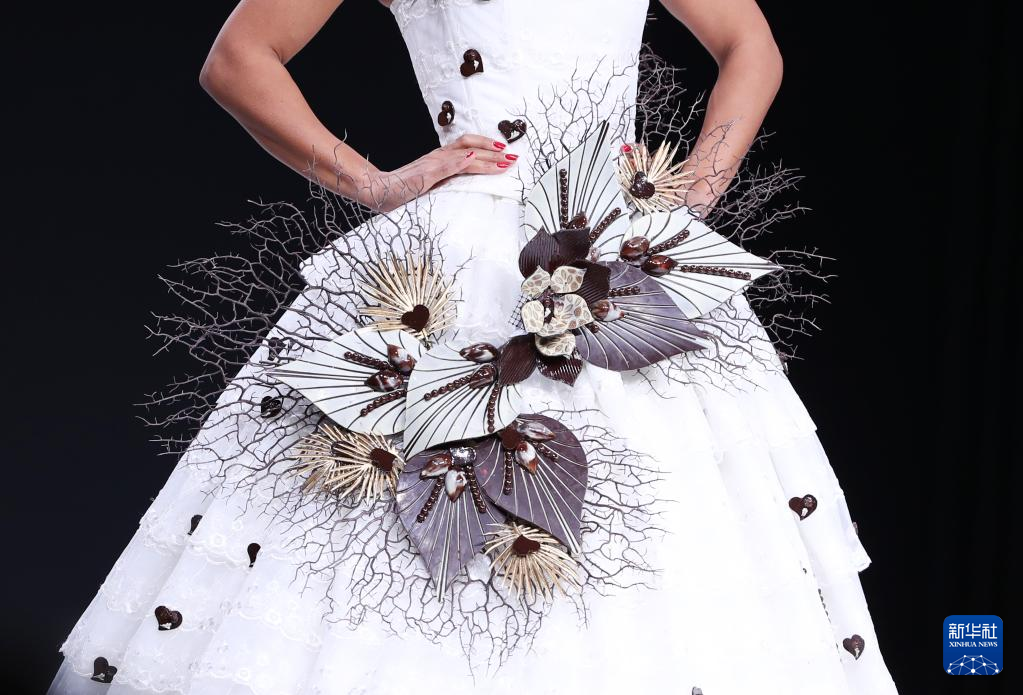 10月27日,在法国巴黎巧克力沙龙的启动晚会上,模特展示“巧克力服装”。 第26届巴黎巧克力沙龙将于10月28日至11月1日在法国巴黎凡尔塞门展览馆举行。 新华社记者 高静 摄pagebreak