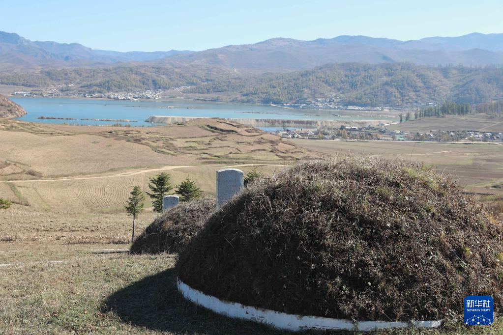 10月23日在朝鲜咸镜南道西北部拍摄的长津邑中国人民志愿军烈士合葬墓地。山坡下的湖即为朝鲜北部最大的湖泊长津湖。 新华社记者 江亚平 摄pagebreak