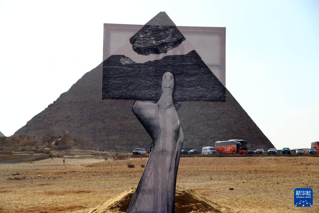 10月21日在埃及吉萨金字塔景区举办的艺术展上拍摄的一件艺术作品。