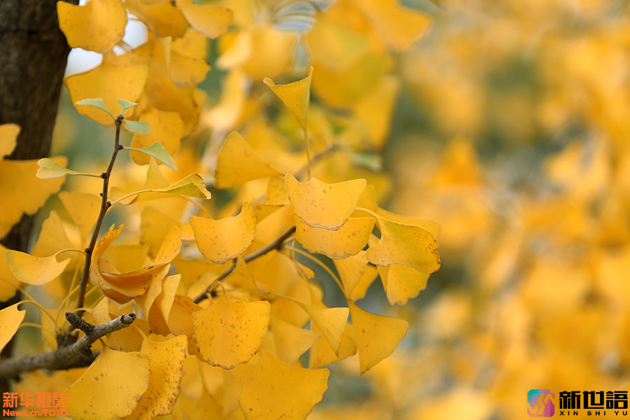 10月28日,在河北省邢台市平乡县南湖公园拍摄的银杏树。