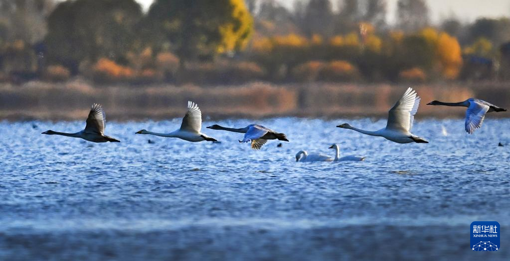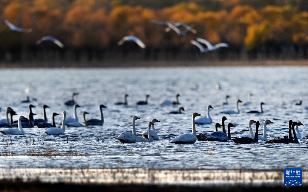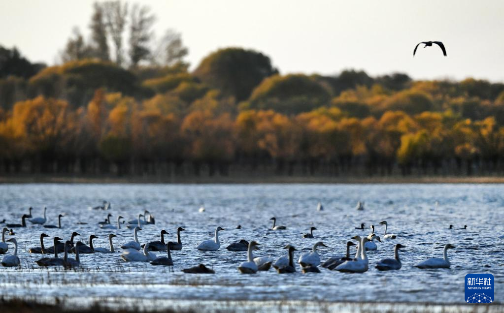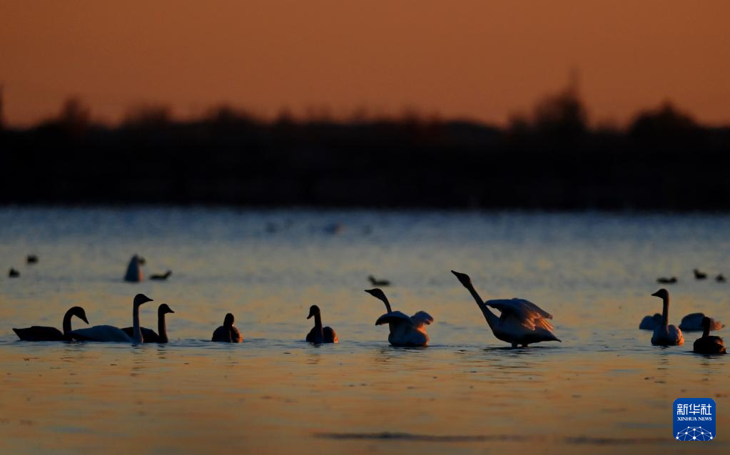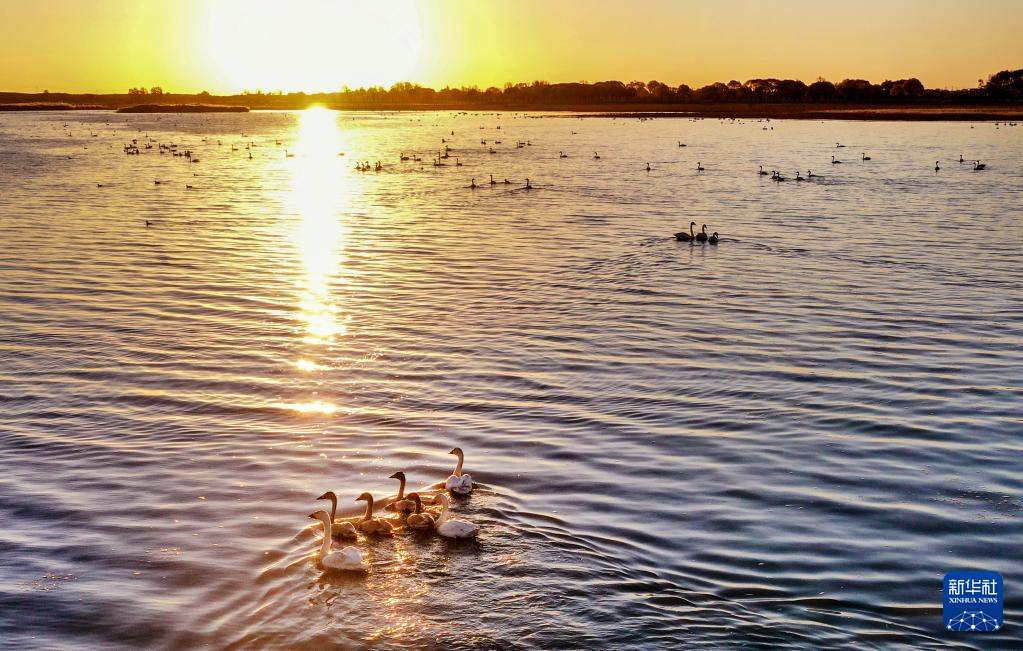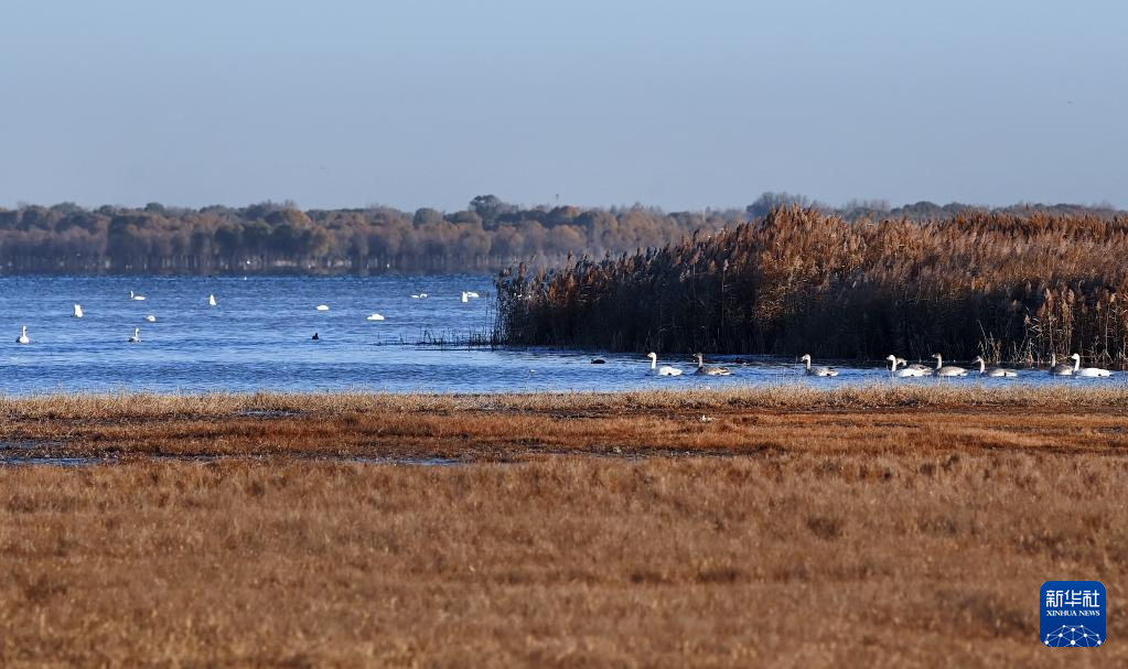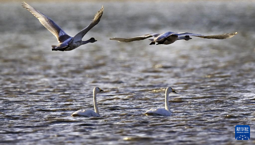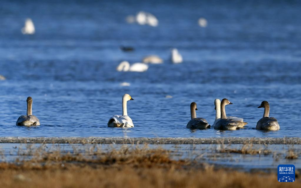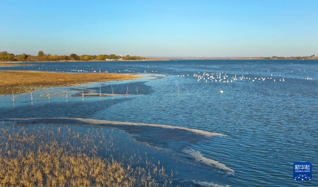 近日,陕西省榆林市榆阳区河口水库湿地迎来大批白天鹅、赤麻鸭等鸟类。近年来,位于毛乌素沙地南缘的榆阳区采取退牧还湿、禁牧减畜等有效措施,加强生态环境保护。河口水库湿地拥有大量浅滩、芦苇,地势平缓,水域宽广,野生鱼虾资源丰富,已经成为越冬候鸟途中觅食、停歇的理想之地。 新华社记者 陶明 摄