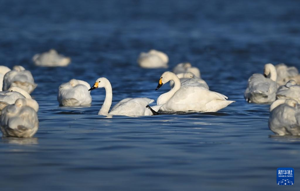 近日,陕西省榆林市榆阳区河口水库湿地迎来大批白天鹅、赤麻鸭等鸟类。
