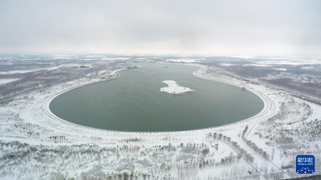 11月7日拍摄的山东省聊城市茌平区贾寨镇如意湖雪景(无人机照片)。 当日是“立冬”节气,受寒潮影响,全国多地迎来降雪天气。 新华社发(赵玉国摄)pagebreak