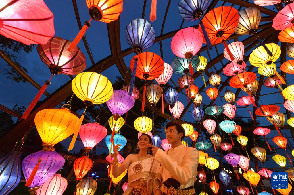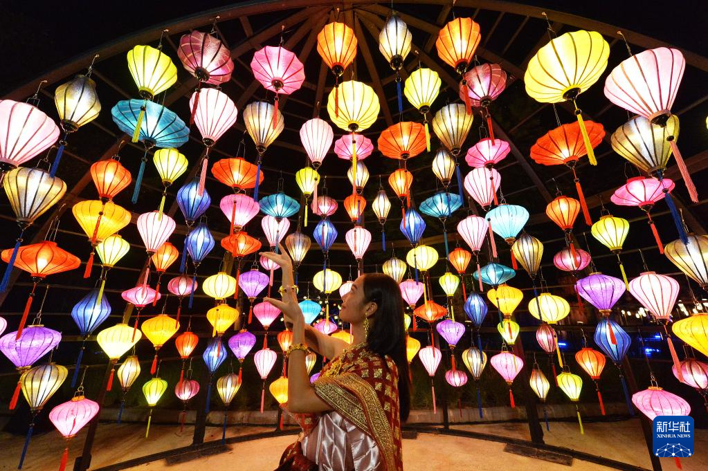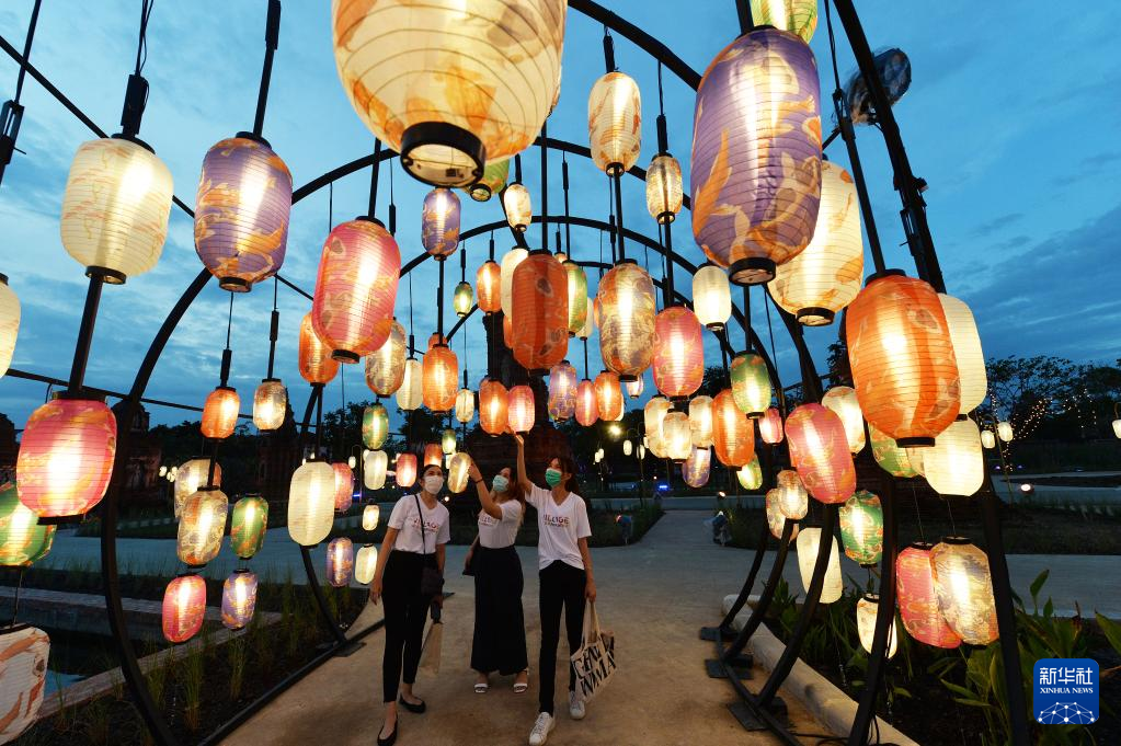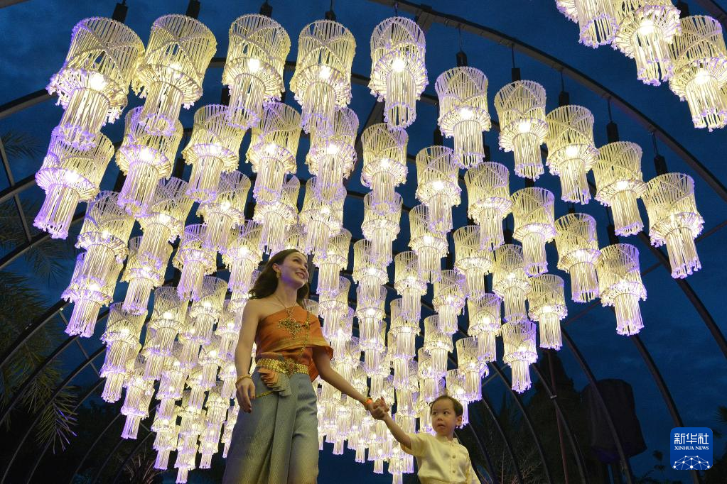 11月8日,游客在泰国北榄府举行的国际灯笼美食节预展活动上观赏灯笼。 泰国国际灯笼美食节将于11月12日至12月6日在北榄府举办。 新华社发(拉亨摄)
