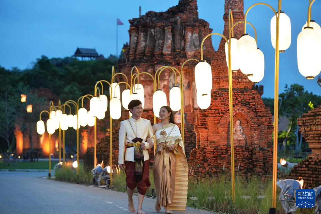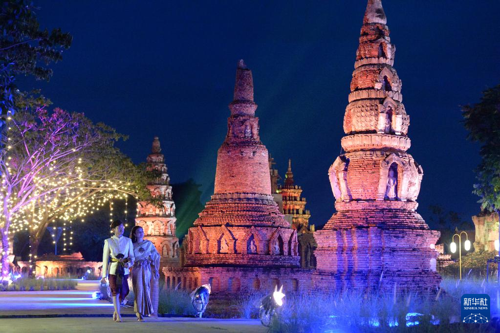 11月8日,游客在泰国北榄府举行的国际灯笼美食节预展活动上游览。 泰国国际灯笼美食节将于11月12日至12月6日在北榄府举办。 新华社发(拉亨摄)