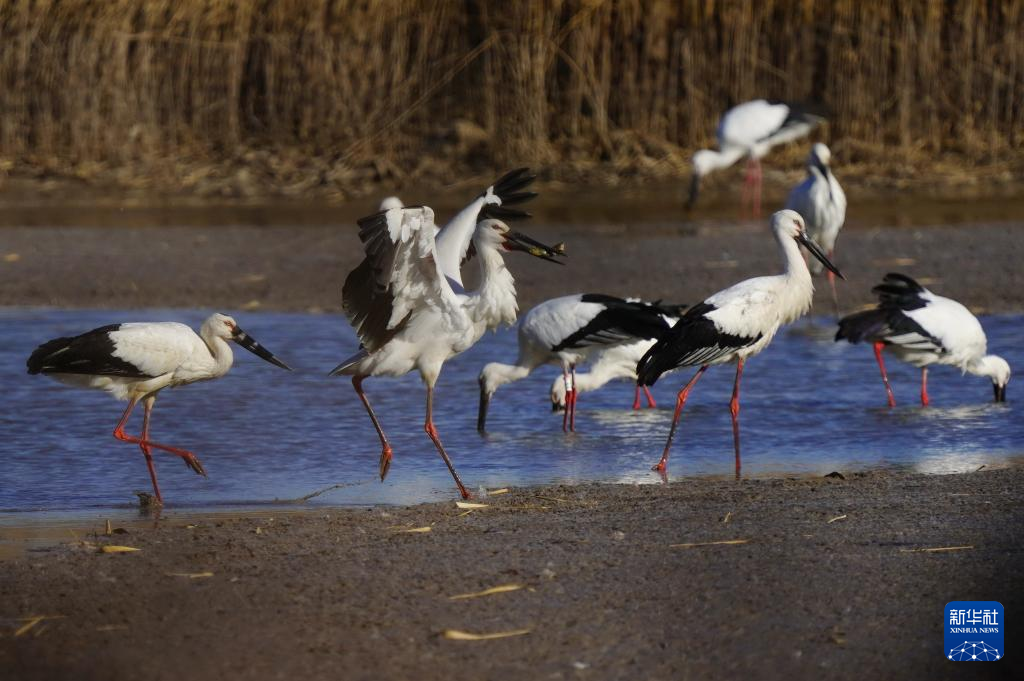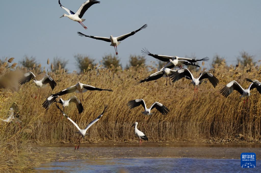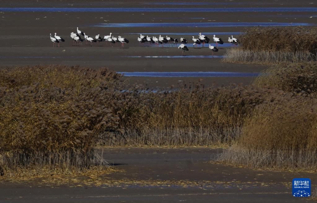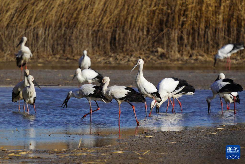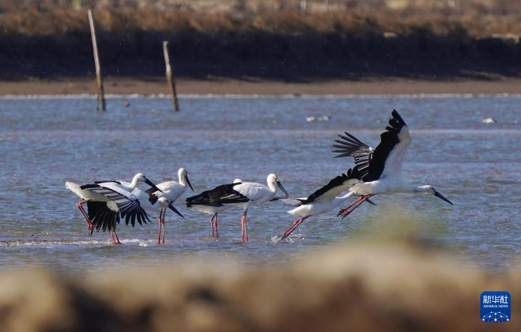 近日,大批南迁的东方白鹳飞抵河北省唐山市曹妃甸湿地休息、觅食。据介绍,该地2020年以来不断加强湿地保护力度,曹妃甸湿地逐渐成为国家一级保护动物东方白鹳的重要栖息地。 新华社记者 杨世尧 摄