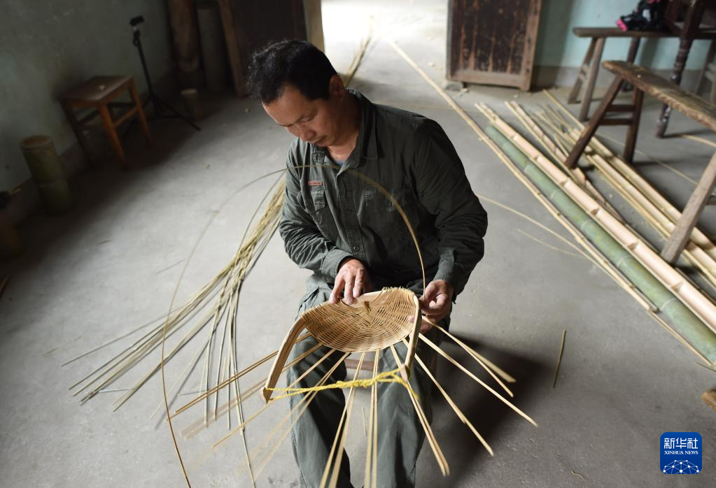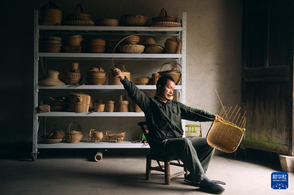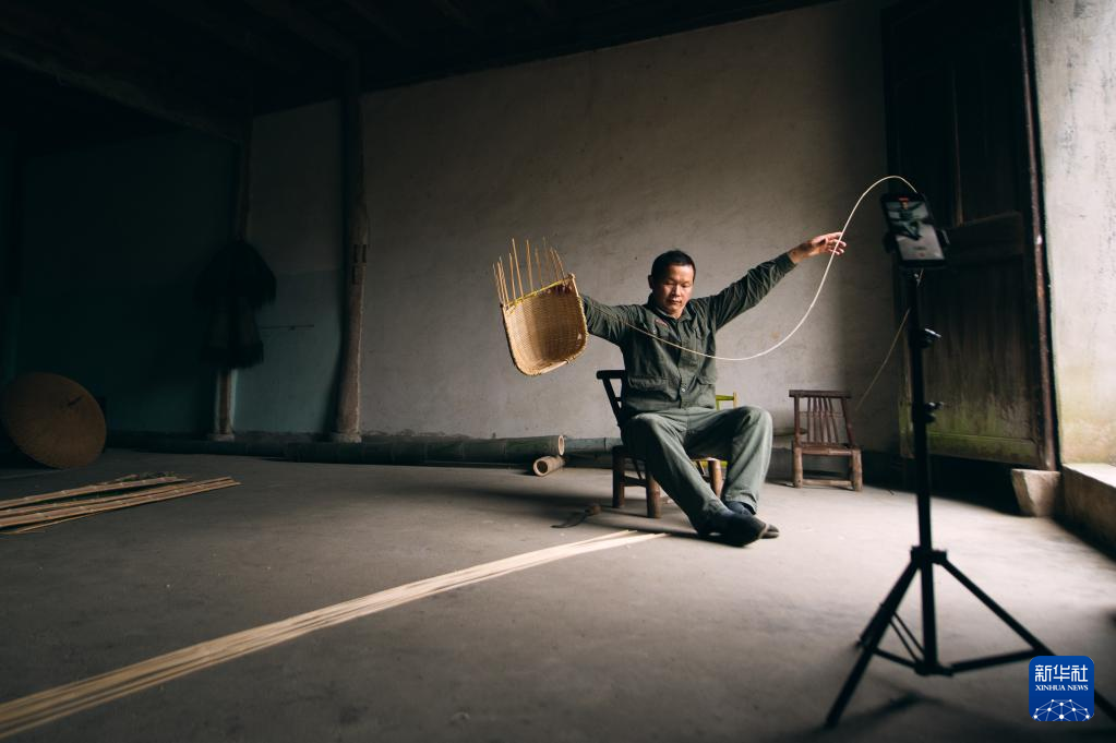用竹条篾片制作生活用品,在中国有着悠久的历史。在竹林掩映的杭州市临安区锦南街道横岭村,51岁的竹编师潘云峰通过短视频展示竹编手艺。他的竹编短视频走红海外,引发众多外国网友对于中国传统手工艺的关注。 潘云峰是土生土长的临安人,14岁起跟着师父学习竹编。2019年,在外打工多年的潘云峰看到许多手工艺人在短视频平台上展示技能,觉得自己从小练习的竹编也不遑多让。他自学了短视频拍摄、剪辑技巧,回到横岭村,在亲戚的老屋里拍摄短视频,并尝试直播自己加工竹编制品的过程。潘云峰用一双巧手,将根根竹篾变成了拖鞋、帽子、伞等物品。他上传的短视频单条最高点赞量超过200万。 在这个沿盘山公路穿越竹海后方能抵达的清幽小村里,不少村民都会竹编。潘云峰希望通过自己的努力,带动乡亲们不断创新这项传统手艺。他说:“虽然我的竹编水平不是特别高,但我会边拍边创新,在竹编的道路上一直走下去。” 新华社记者 江汉 摄