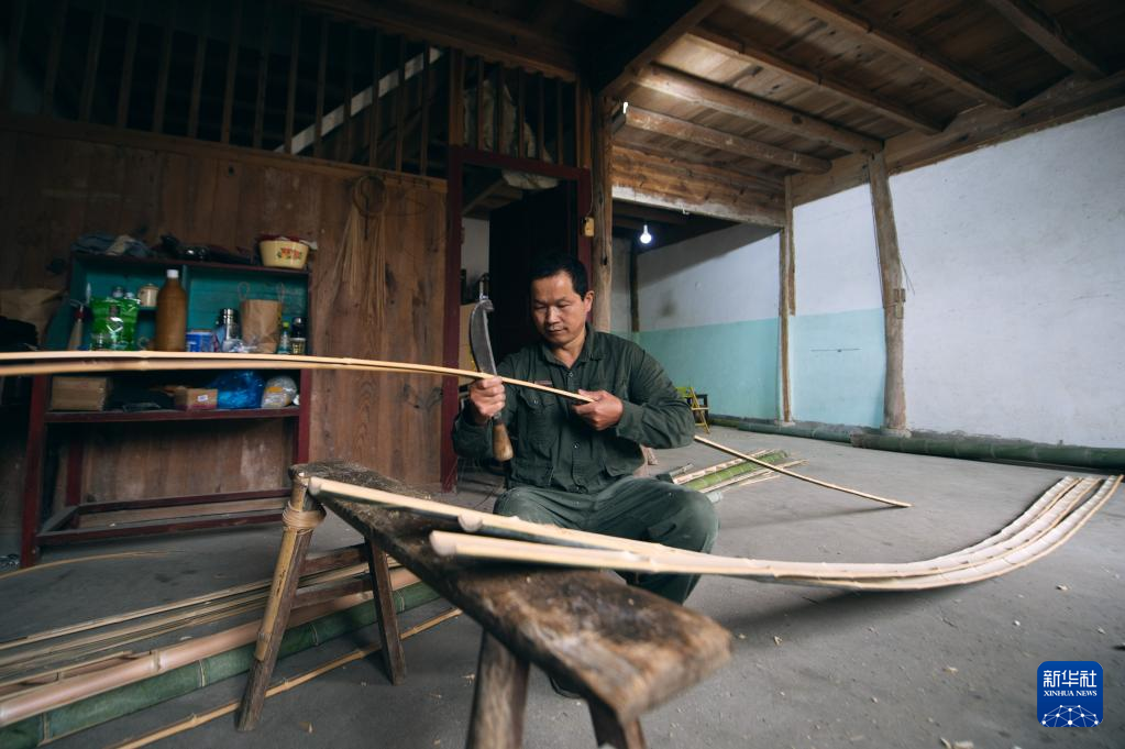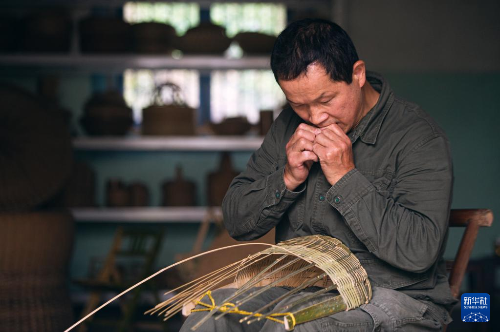 用竹条篾片制作生活用品,在中国有着悠久的历史。在竹林掩映的杭州市临安区锦南街道横岭村,51岁的竹编师潘云峰通过短视频展示竹编手艺。他的竹编短视频走红海外,引发众多外国网友对于中国传统手工艺的关注。 潘云峰是土生土长的临安人,14岁起跟着师父学习竹编。2019年,在外打工多年的潘云峰看到许多手工艺人在短视频平台上展示技能,觉得自己从小练习的竹编也不遑多让。他自学了短视频拍摄、剪辑技巧,回到横岭村,在亲戚的老屋里拍摄短视频,并尝试直播自己加工竹编制品的过程。潘云峰用一双巧手,将根根竹篾变成了拖鞋、帽子、伞等物品。他上传的短视频单条最高点赞量超过200万。 在这个沿盘山公路穿越竹海后方能抵达的清幽小村里,不少村民都会竹编。潘云峰希望通过自己的努力,带动乡亲们不断创新这项传统手艺。他说:“虽然我的竹编水平不是特别高,但我会边拍边创新,在竹编的道路上一直走下去。” 新华社记者 韩传号 摄