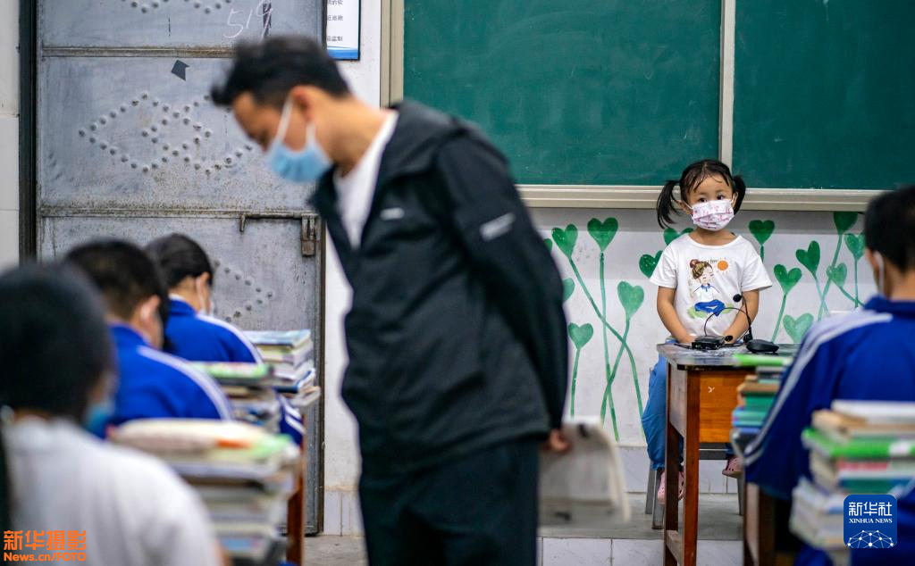 梁照满说,复课后的工作很忙碌。女儿彤彤跟他在一起,让他感觉很温暖。新华社记者 江文耀 摄