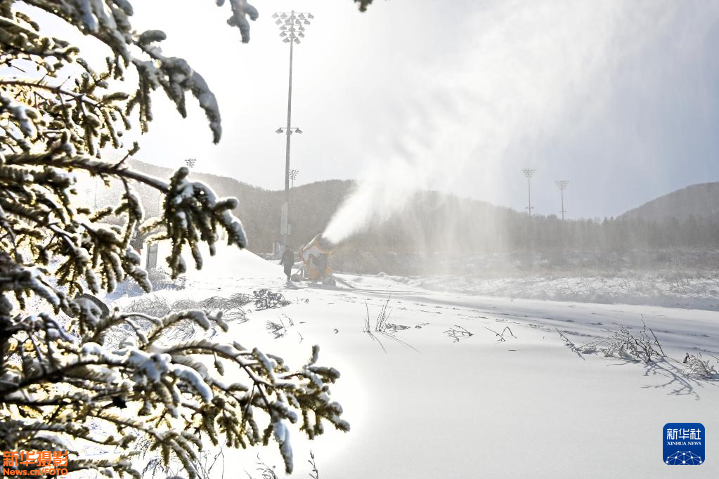 近日,利用自然降雪的有利时机,2022年北京冬奥会张家口赛区国家越野滑雪中心进行人工造雪。新华社发(武殿森摄)