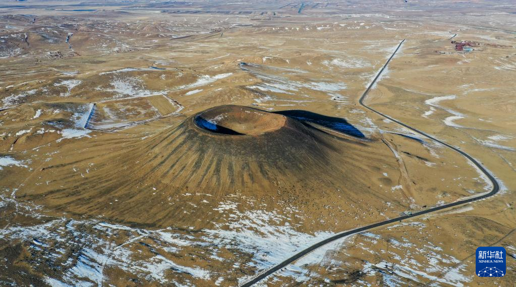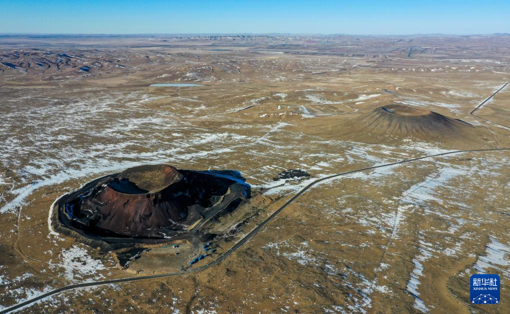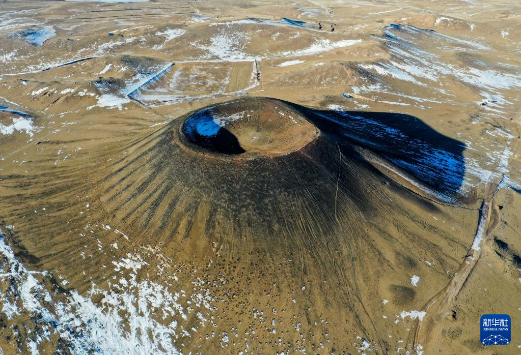 乌兰哈达火山群位于内蒙古乌兰察布市察哈尔右翼后旗,由众多大小不一的火山组成。冬日里,火山地貌与草原残雪相映成趣,呈现出独特风貌。新华社记者 刘懿德 摄