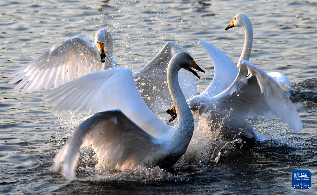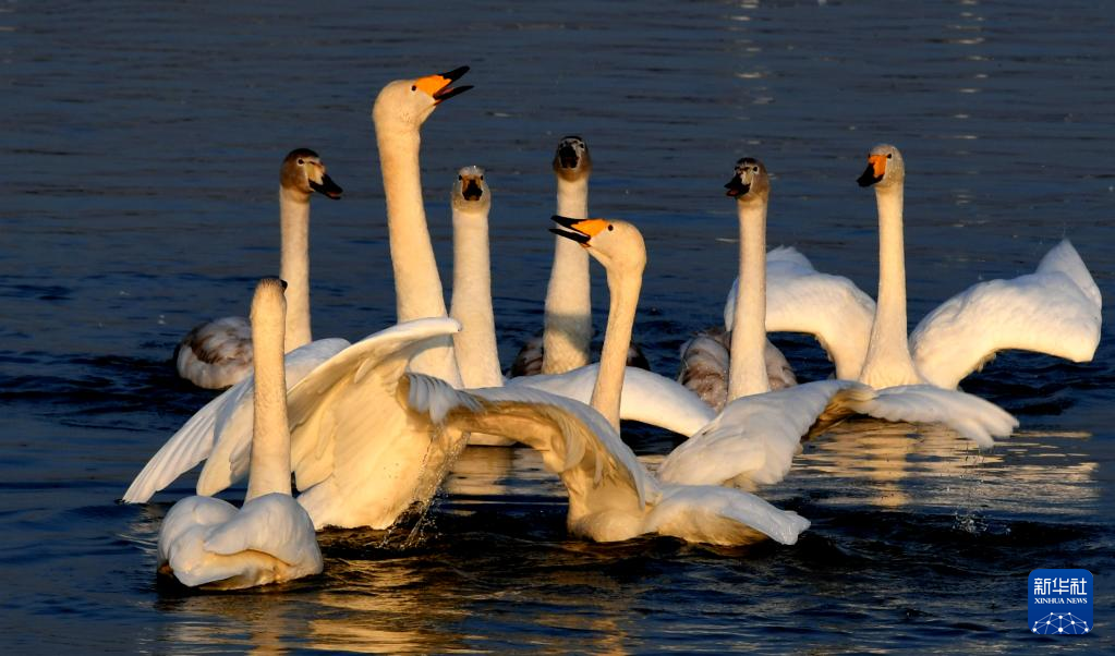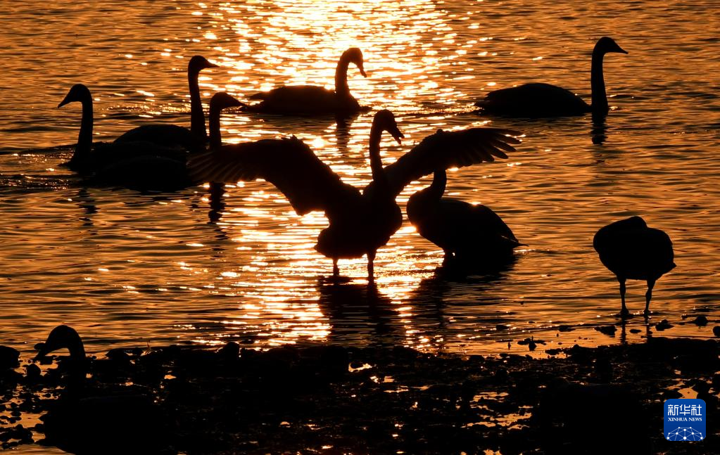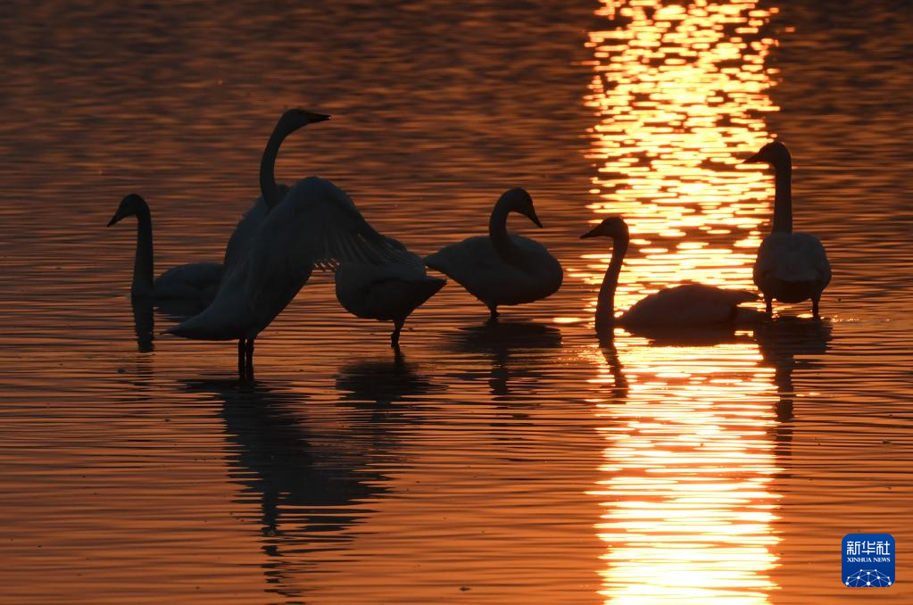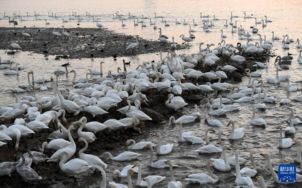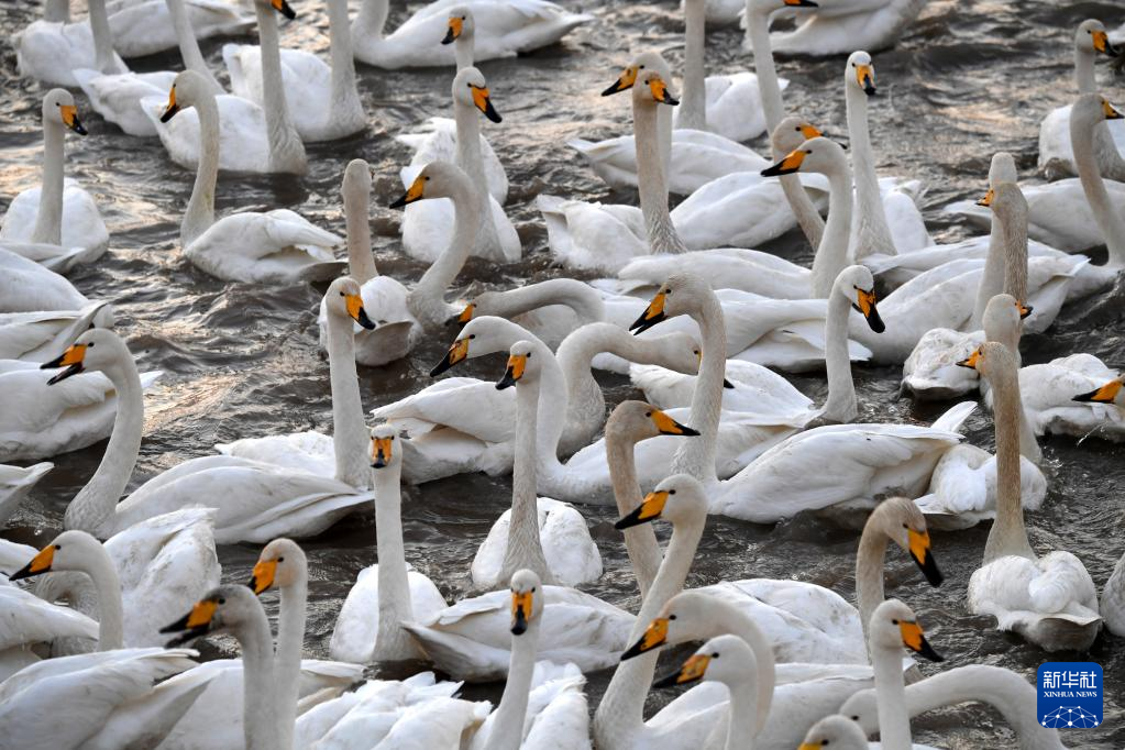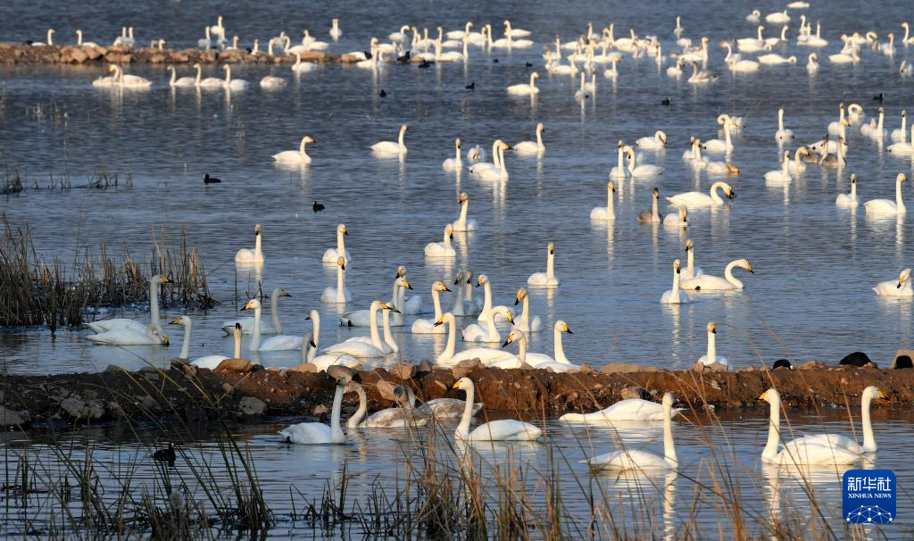 近日,大批白天鹅从西伯利亚迁徙到河南省三门峡市黄河湿地栖息越冬,形成一幅宁静和谐的美丽画卷。新华社记者 吕国庆 摄