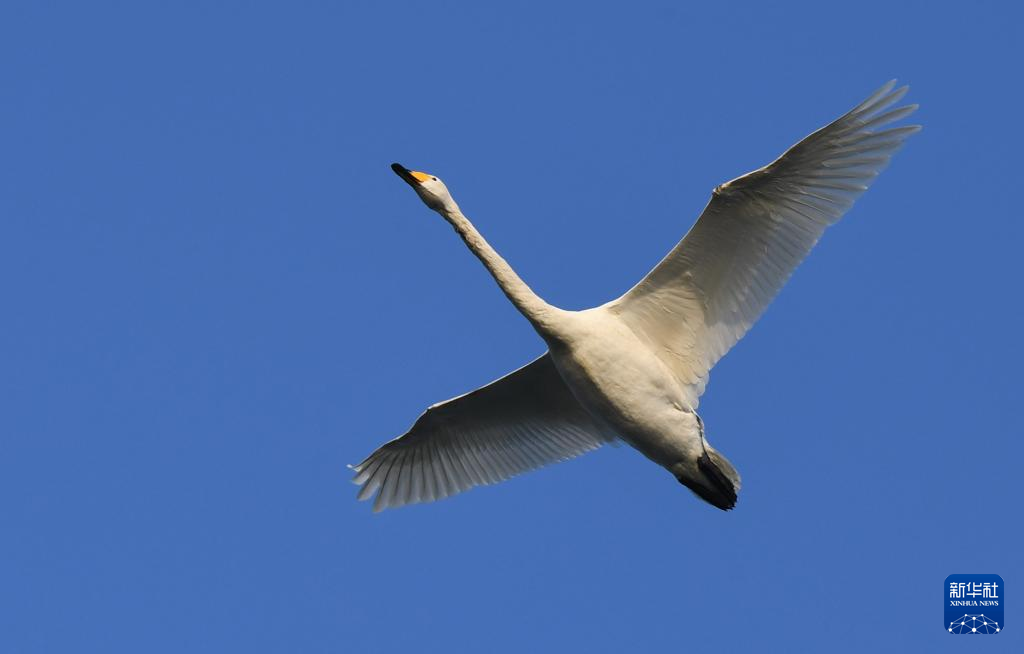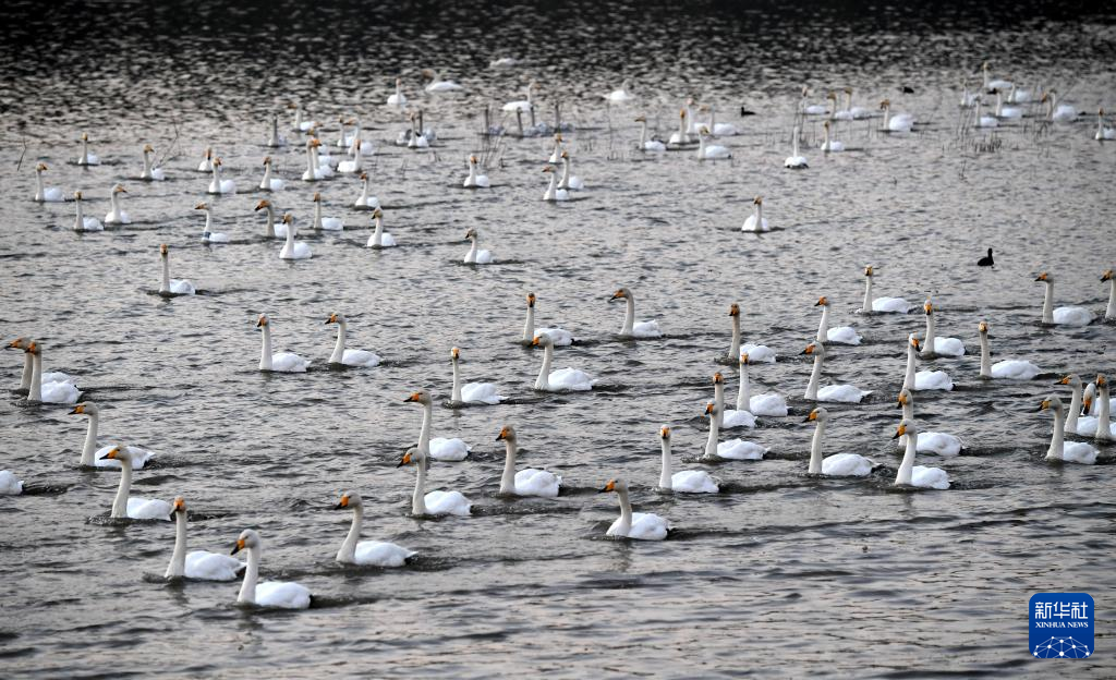 近日,大批白天鹅从西伯利亚迁徙到河南省三门峡市黄河湿地栖息越冬,形成一幅宁静和谐的美丽画卷。新华社记者 朱祥 摄
