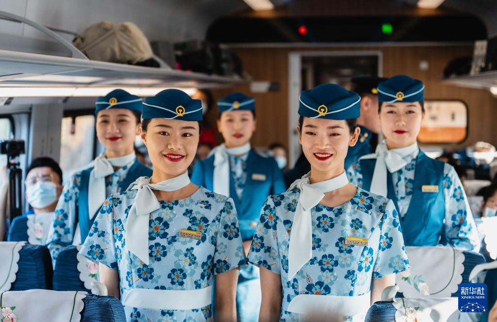 当日上午,中国铁路昆明局集团有限公司昆明客运段为即将开行的中老铁路而设计的列车员制服“丝路花语”首次亮相。