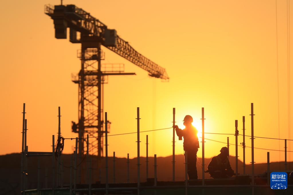 工人在徐大堡核电站3号机组施工现场作业(11月26日摄)。