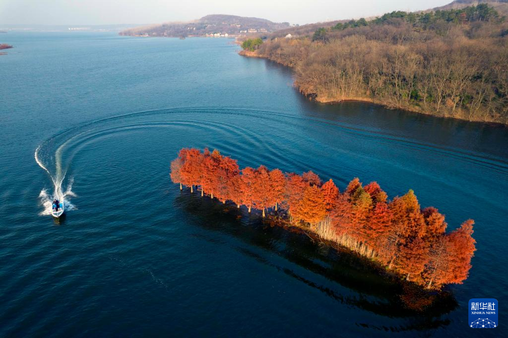 冬日时节,江苏省盱眙县天泉湖“水上森林”色彩斑斓,美如画卷。