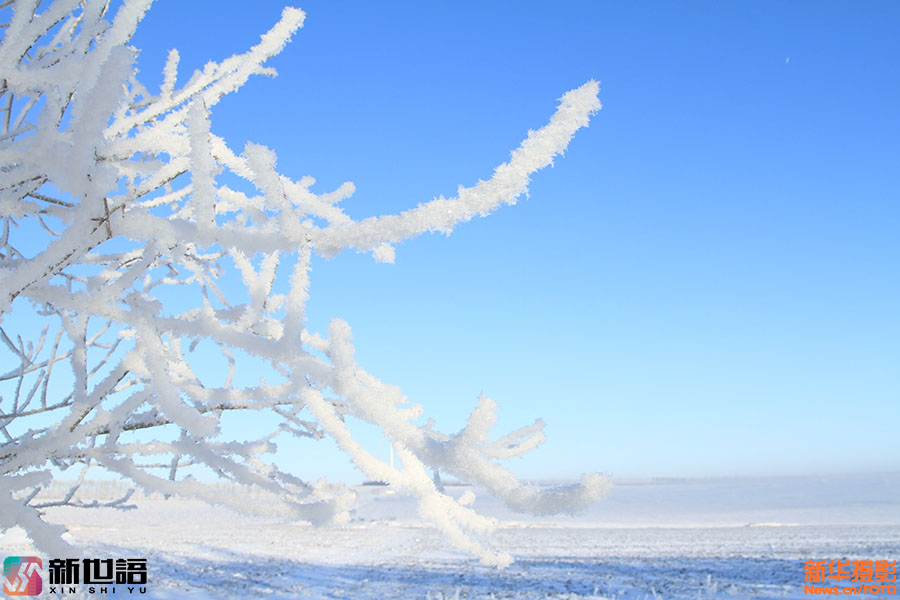 黑龙江省黑河市出现雾凇奇观。我国冬季大雪节气后雾凇景观越来越多,雾凇是一种自然奇观,让游人和摄影人惊喜不已。雾凇是低温时空气中水汽直接凝华,或过冷雾滴直接冻结,在物体上的乳白色冰晶沉积物。雾凇美景宛如白雪公主童话世界。新世语/林进春(声明:凡带有水印的图片,系版权图片,受法律保护,未经许可请勿转载。)