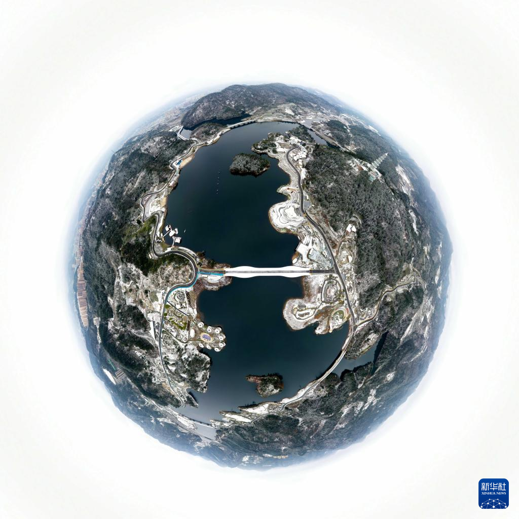12月28日在贵州省都匀绿博园拍摄的雪景(无人机全景照片)。