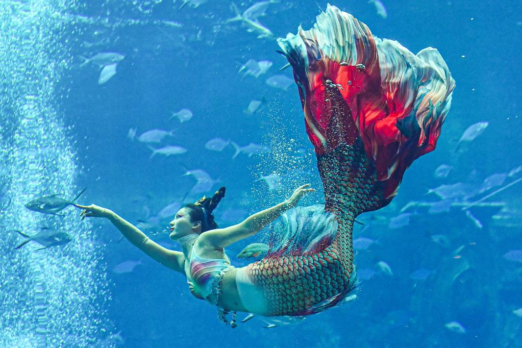 当日,由国家体育总局水上运动管理中心等单位主办的首届中国美人鱼表演赛在海南三亚亚特兰蒂斯开赛,共吸引来自国内的40余位选手参赛。