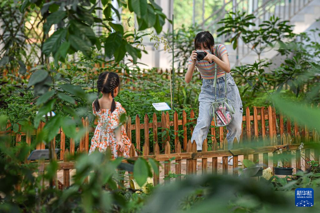 4月3日,游客在海口热带农业科技博览园参观。