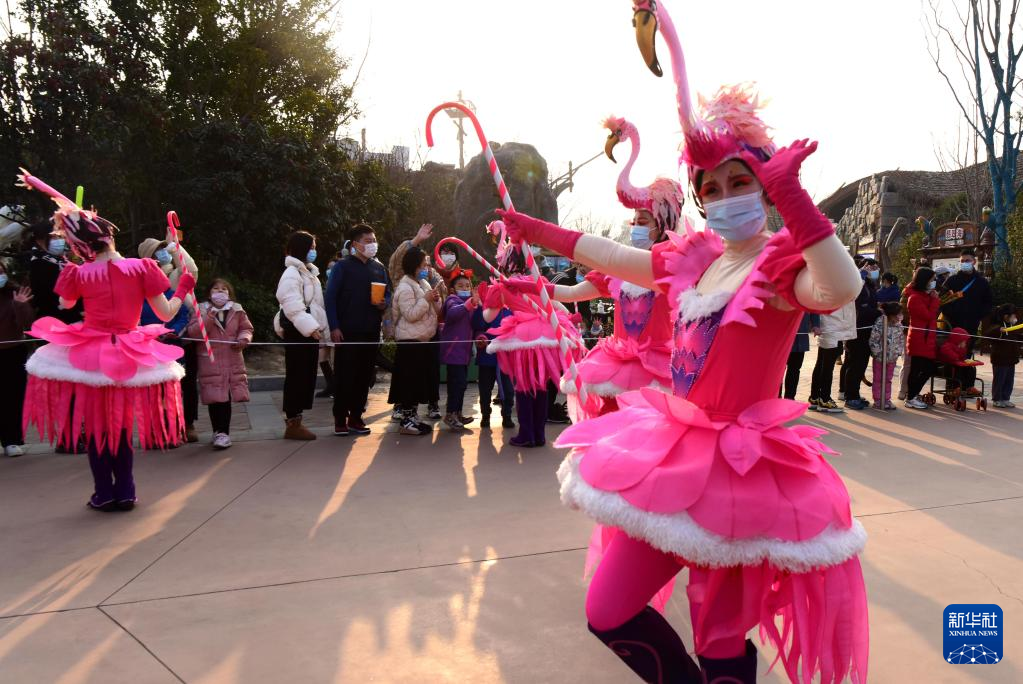 1月2日,游客在郑州银基动物王国景区观看表演。