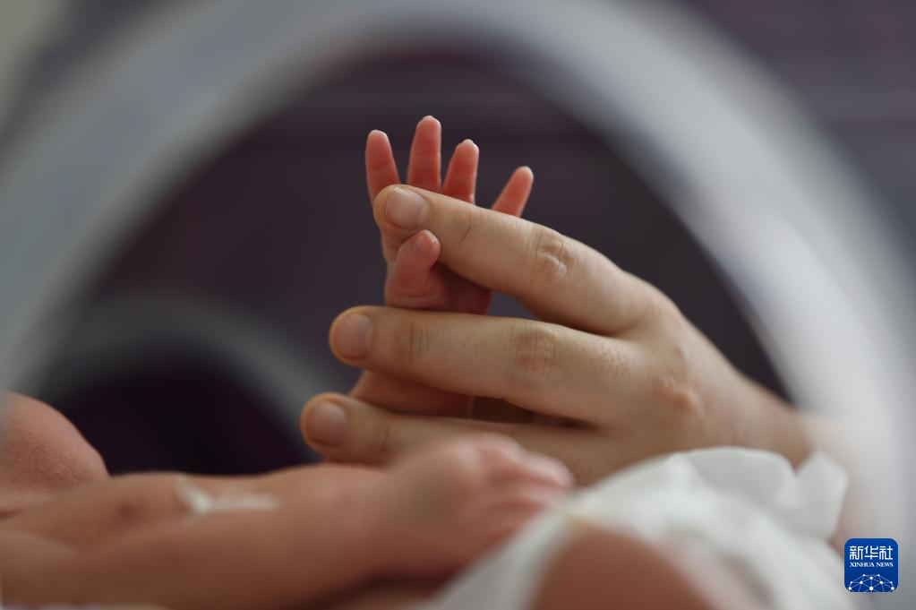 1月1日,在江苏南京市江宁医院,医护人员跟一个新生儿握手。