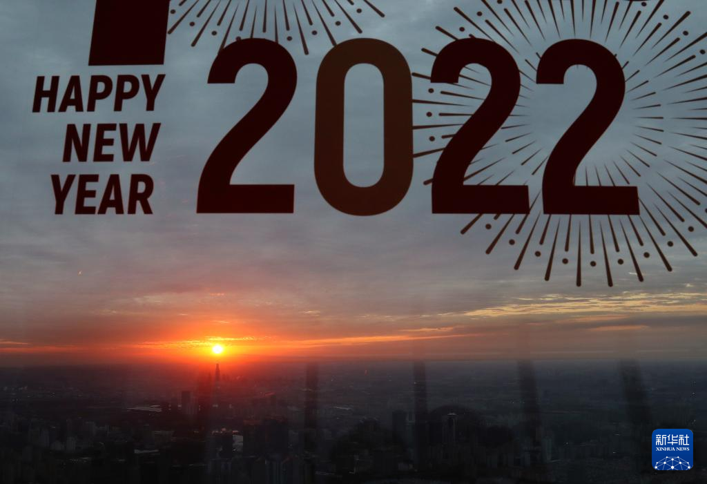 1月1日在上海环球金融中心100层观光厅拍摄的日出。