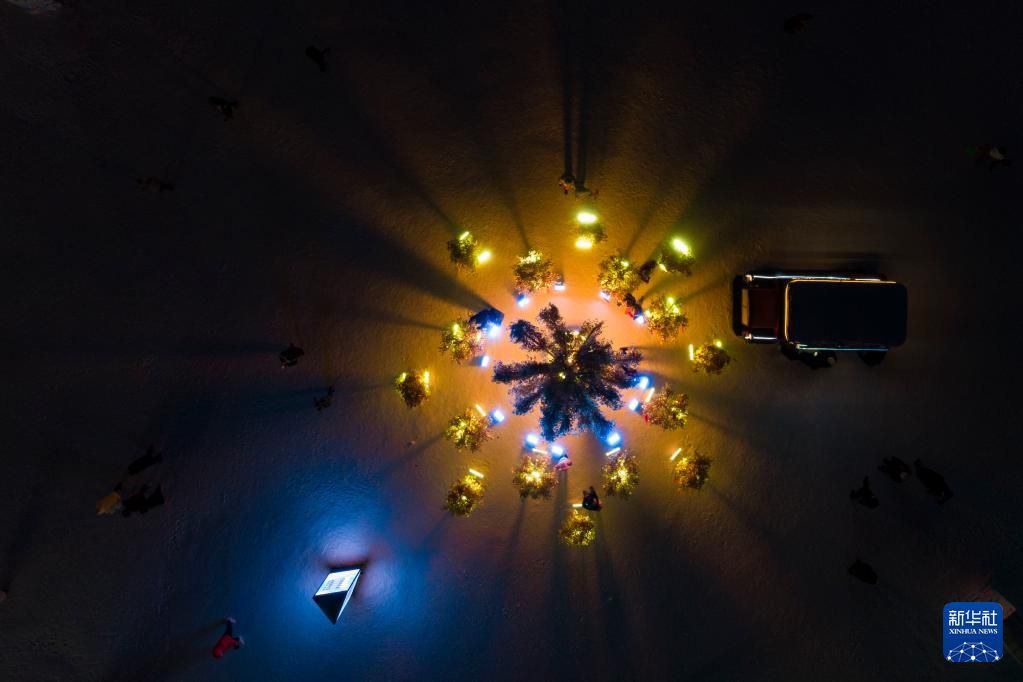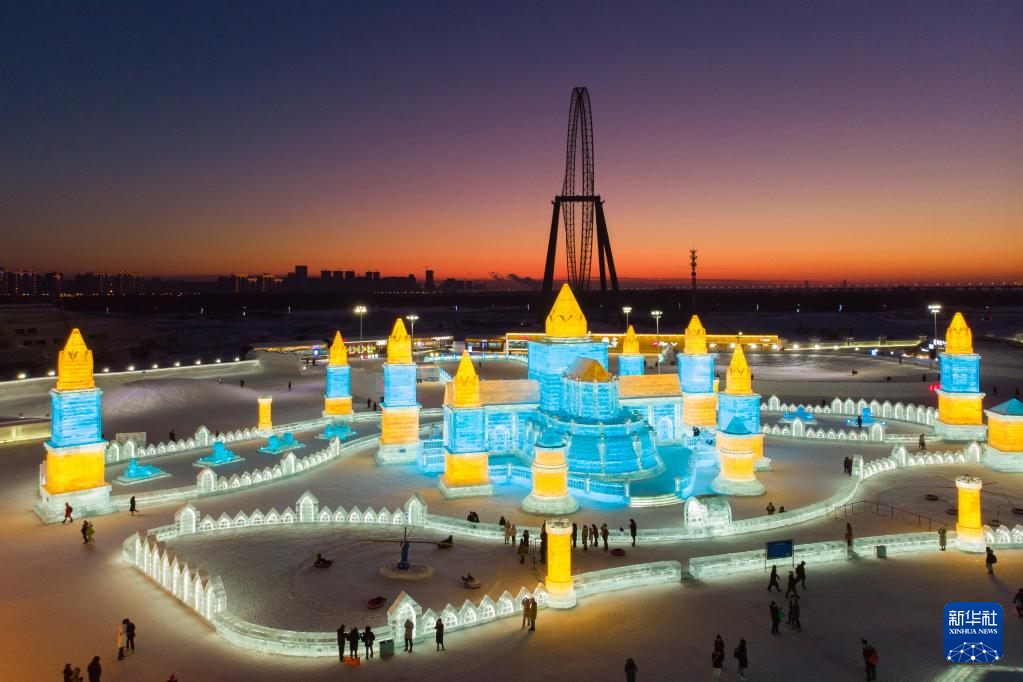 1月2日,游客在哈尔滨冰雪大世界园区游玩(无人机照片)。