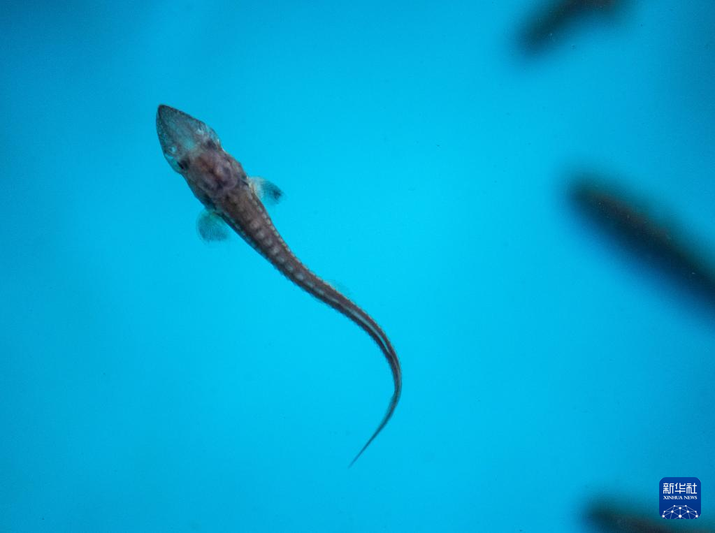 1月11日在中国三峡集团有限公司中华鲟研究所宜昌实验站幼苗培育车间拍摄的中华鲟“子二代”幼苗。据了解,2021年,该研究所的“子二代”中华鲟全人工繁育规模创新高,共孵化鱼苗60万尾,培育10至20厘米规格幼鱼25万尾。