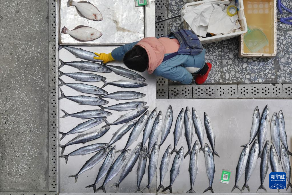 1月12日,在山东烟台红利市场,一名摊主在整理海鲜。