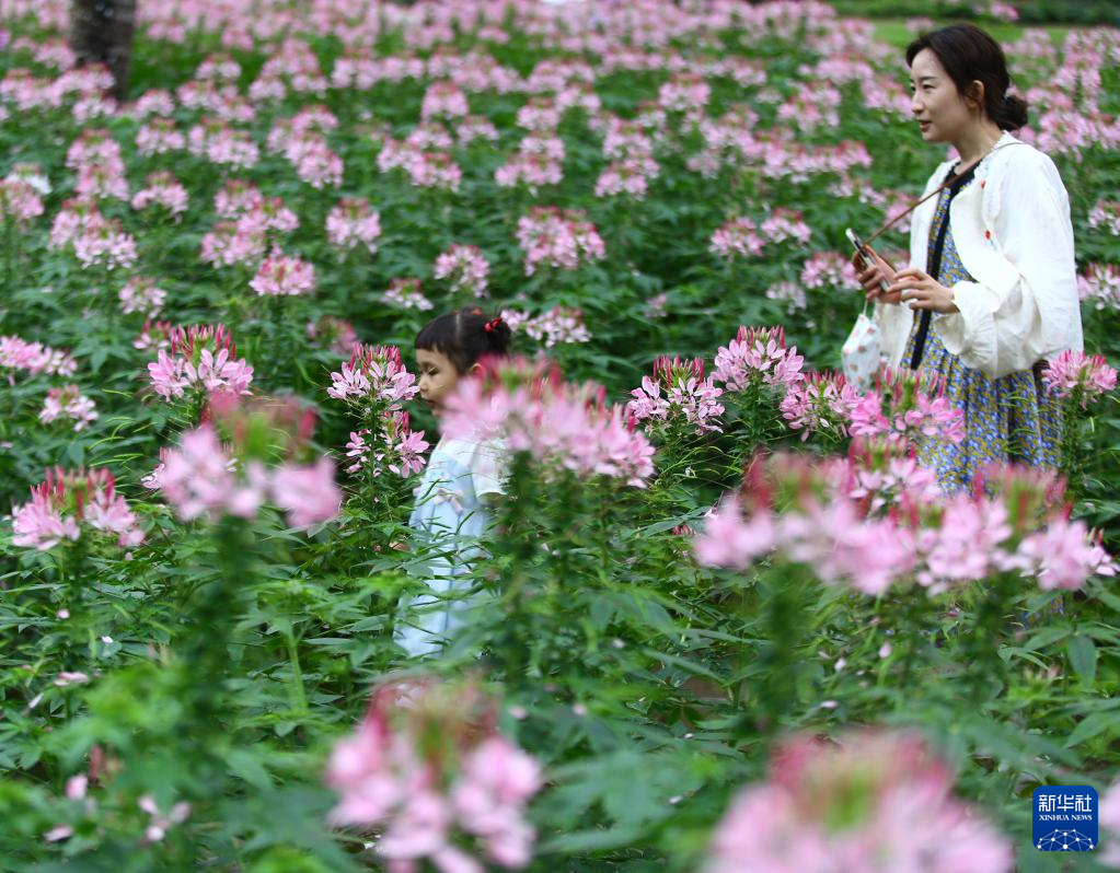 2月3日,家长带着孩子在海南省三亚市南山文化旅游区的花海中游玩。
