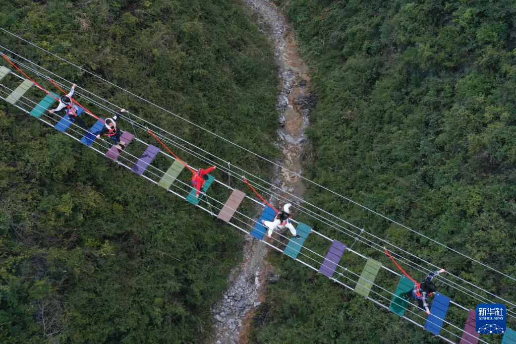 2月3日,游人在重庆市酉阳土家族苗族自治县板溪镇叠石花谷景区体验高空旅游项目。