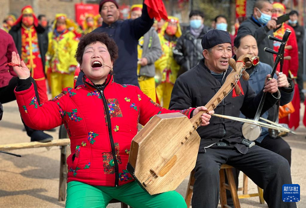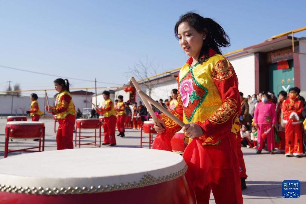 2月1日,河北邢台经济开发区留村街道办事处留西村村民在打鼓。