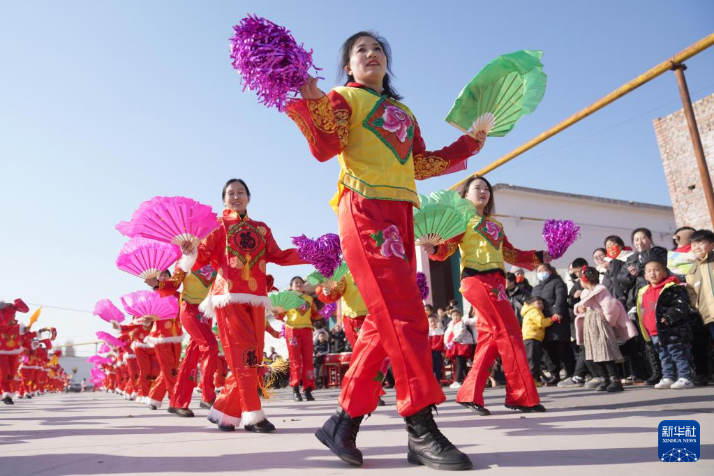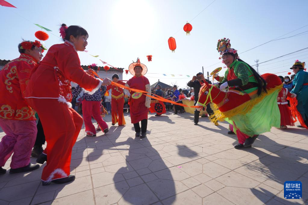 2月1日,河北邢台经济开发区留村街道办事处留西村村民在扭秧歌。
