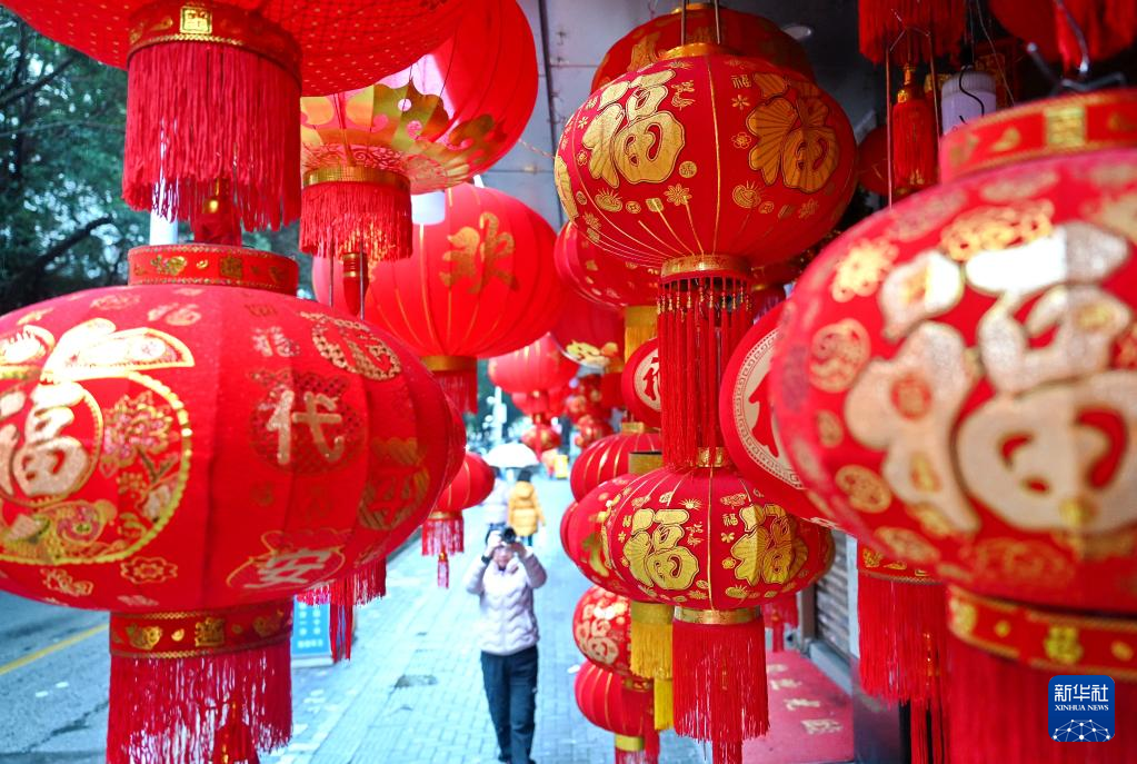 2月1日,市民在福州鼓楼区拍摄“福”字大红灯笼。