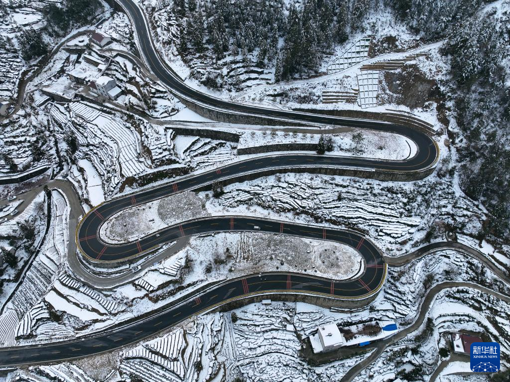这是2月9日拍摄的湖北省宜昌市秭归县茅坪镇盘山公路(无人机照片)。