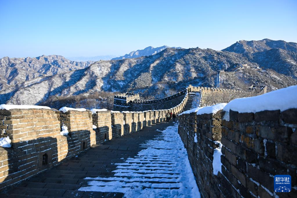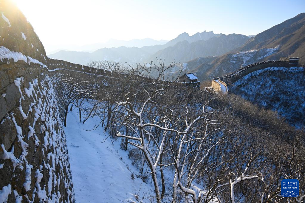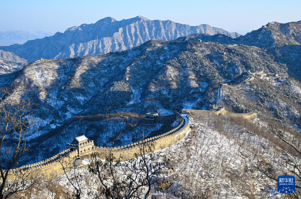 近日,北京迎来降雪天气。雪后的慕田峪长城犹如长龙卧于银装素裹的山脊,蔚为壮观。