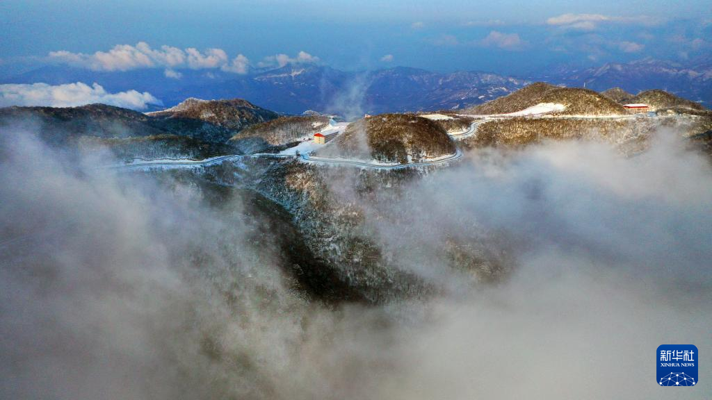 2月21日拍摄的汉中市龙头山景区雪景(无人机照片)。