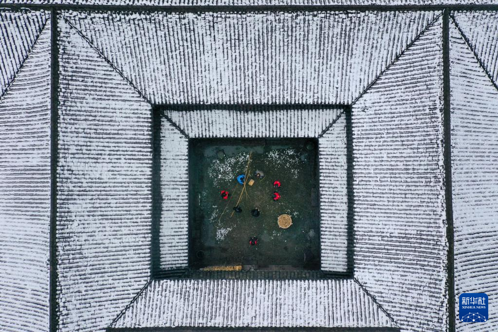 2月23日拍摄的浙江省宁波市海曙区李家坑村雪景(无人机照片)。