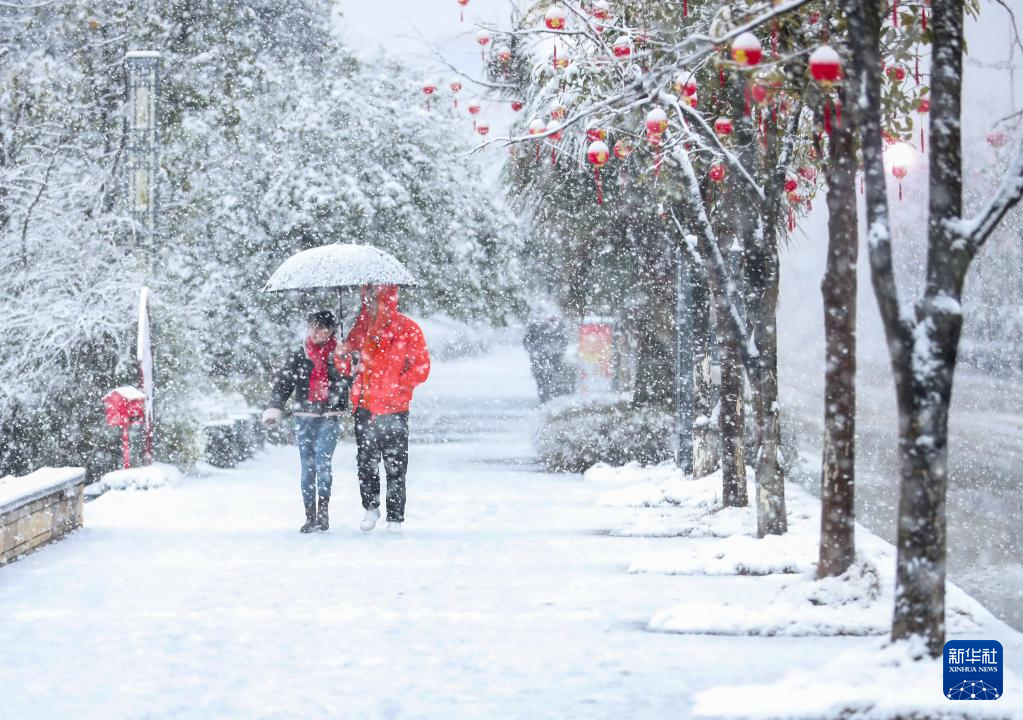 2月22日,在贵州省铜仁市玉屏侗族自治县,人们冒雪出行。